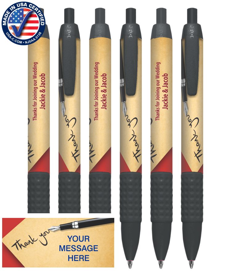 Union Printed - USA Made - Thank You! - Wide Body Click Pen with Colored Trim and Rubber Grip - Full Color Logo