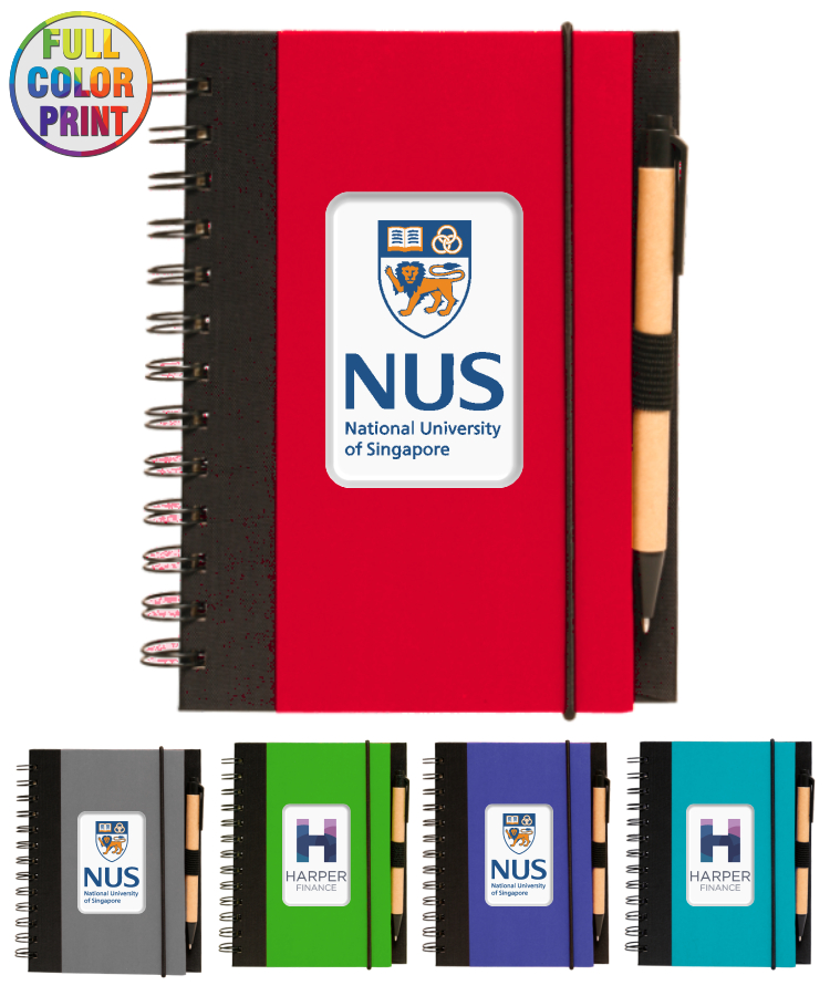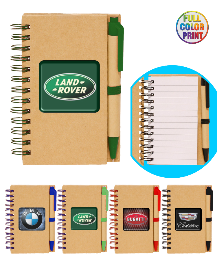 Union Printed - 3x5 Eco Spiral Notebook with Matching Eco Pen - Full Color Logo