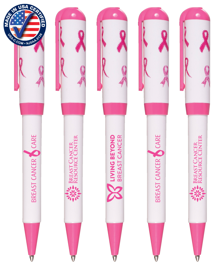 Union Printed - USA Made - Breast Cancer Awareness - Euro Style Twist Pen with Pocket Clip - 1-Color Logo