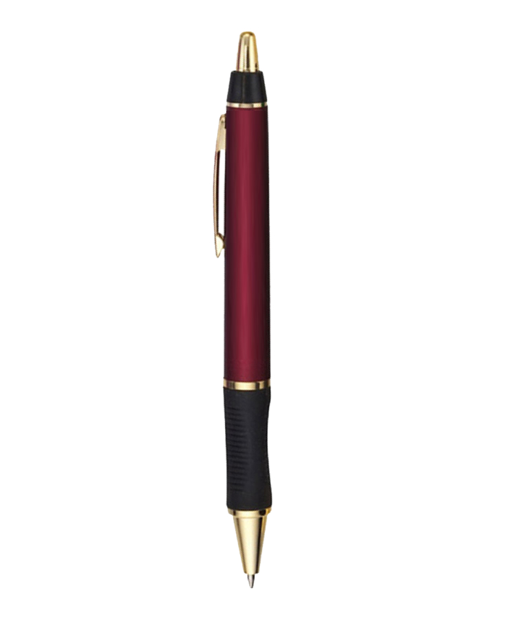 • Features a solid-colored glossy barrel with gold clip and trim.