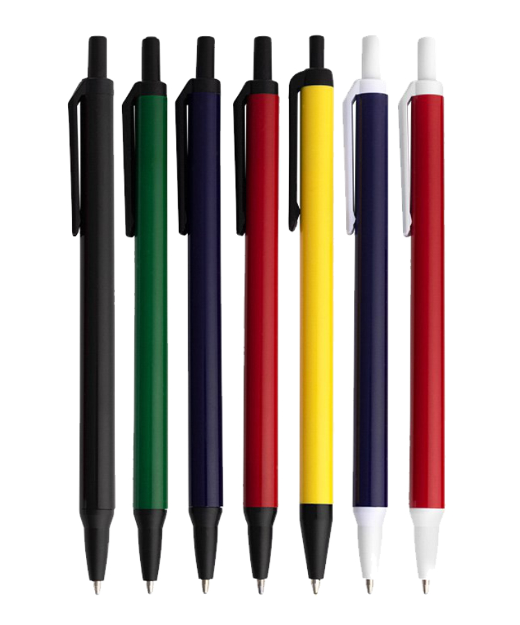 - This stick-style click pen features a sleek barrel with an integrated clip and delivers smooth, consistent ink flow.