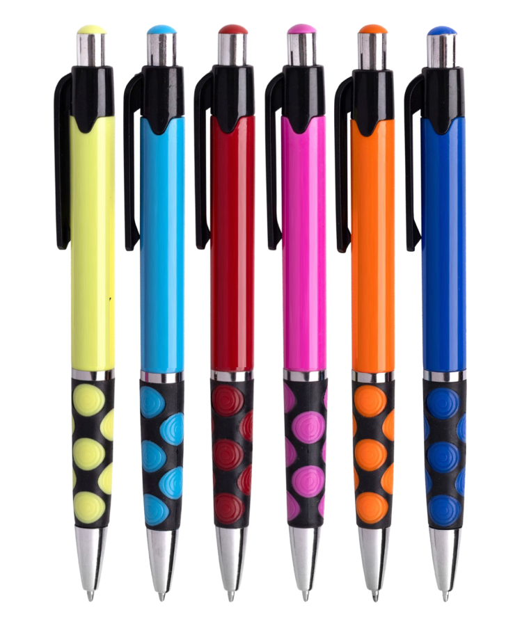 - This glossy retractable click pen features an ergonomic grip for comfortable writing and smooth performance.