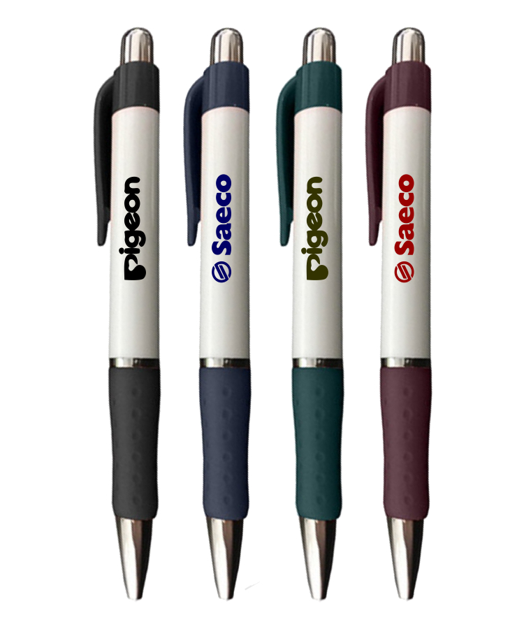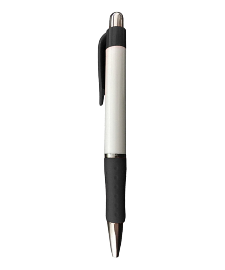Union Printed – Rigid White Barrel Click Pen with Rubber Grip