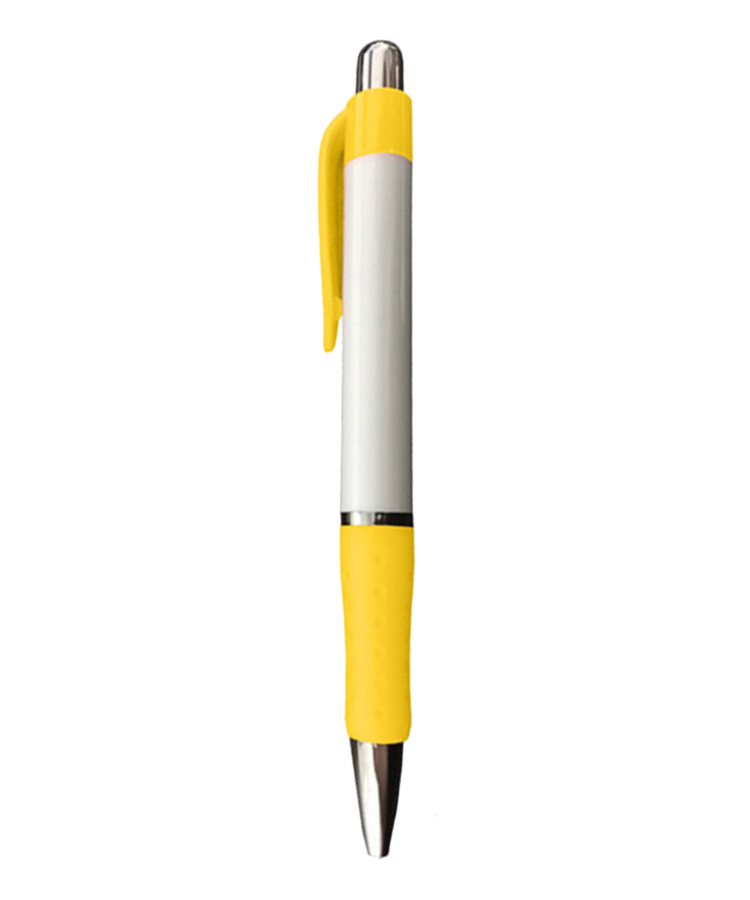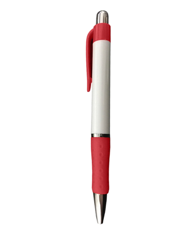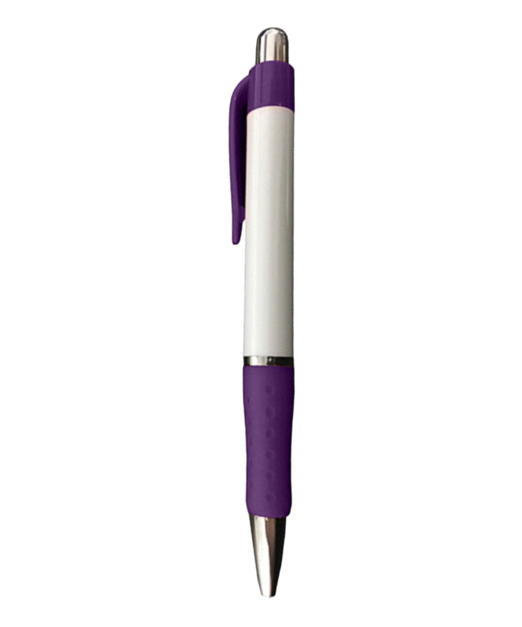 - This click-action pen features a clean white barrel, colored trim, and sleek silver accents for a refined look.
