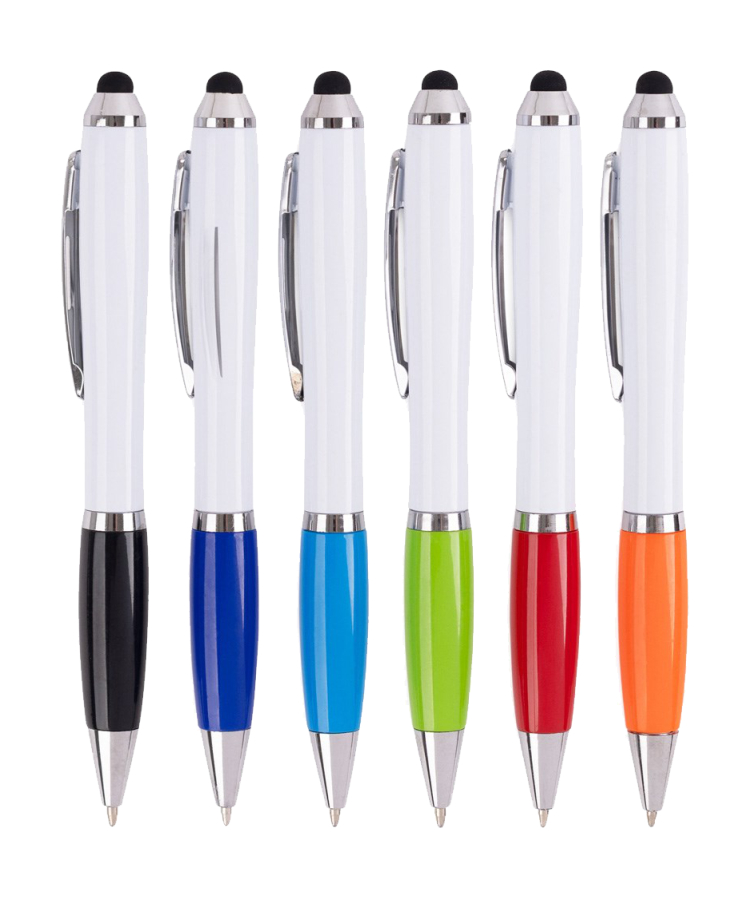 - The iTouch Color Stylus Twist Pen features a crisp white barrel, vibrant color grip, and sleek silver accents for a fresh, modern look.