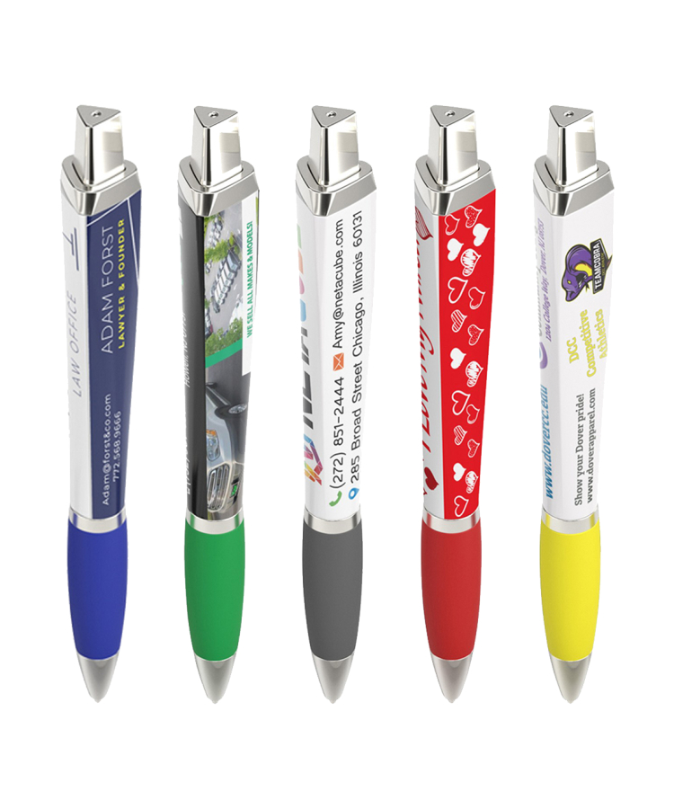 Union Printed - USA Made - Patriotic - Wide Body Click Pen with Colored Trim and Rubber Grip - Full Color Logo