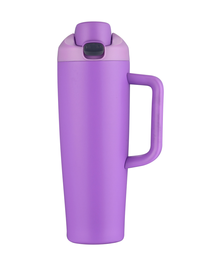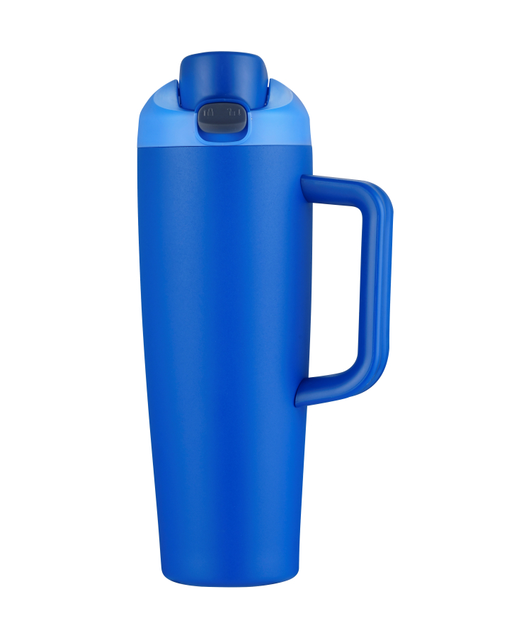 - This versatile 21 oz vacuum bottle mug features a convenient one-push pop-open lid that locks securely when closed.