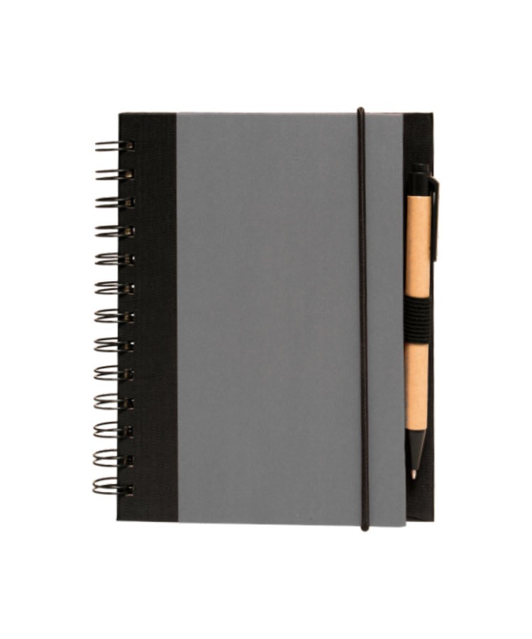 • Union Printed, Eco Spiral Notebook Journal w/ Pen, This Eco Friendly Notepads (5 x 7 in) Features recycled paper cover and inner pages & a Black Recycled Pen.