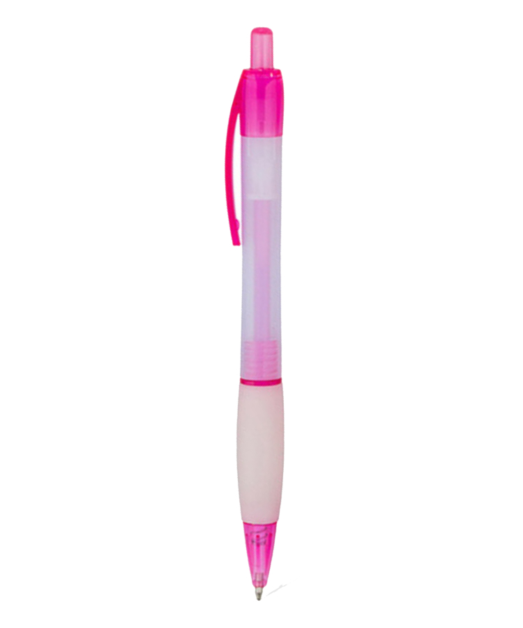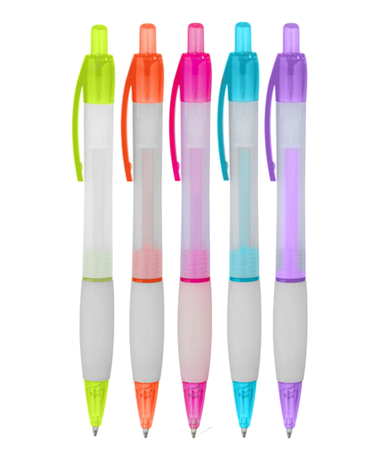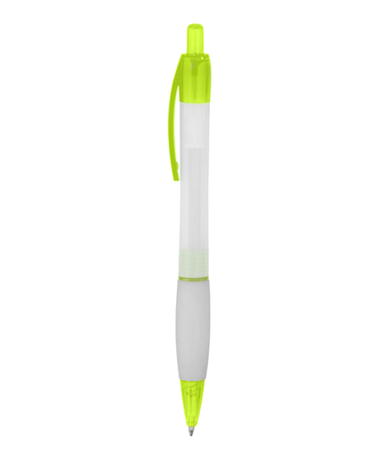 - Featuring a frosted clear barrel with vibrant accents, this click-action pen offers a clean, modern look.